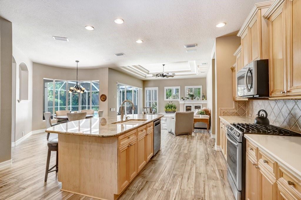 Gorgeous Arthur Rutenberg tile roof home on nearly 1/2 acre in desirable Estates section of GATED Harbor Links village in the heart of WESTCHASE showcasing 4 bedrooms, 4 full bathrooms, office and SALTWATER POOL & SPA on a stunning pond and CONSERVATION homesite. As you enter this meticulously maintained home you will immediately appreciate the stunning new porcelain "wood effect" tile, volume and tray ceilings, crown moldings, soft neutral tones and an abundance of natural light. The foyer opens to a large formal dining room and living room with lovely pool and conservation views as well as a large separate office/den with glass doors. The kitchen is a delight with 42" solid wood cabinetry, crown molding, oversized granite center island, menu desk, stainless steel appliances and large walk-in-pantry. The sumptuous master suite gives you direct pool access, two large walk-in closets with custom cabinetry, oversized master bath with a garden tub, separate shower and custom center island. Three large secondary bedrooms offer a two way split and two upgraded secondary baths. The pool bath was also recently upgraded as well as the large laundry room. A fabulous pool area and newly coated deck affords plenty of room for bathing and enjoying the Florida lifestyle. The yard offers beautiful conservation views and a delightful small pond welcomes otters for the occasional visit. All key mechanics have been recently upgraded - Roof (2022), HVAC (2024 and 2018), Pool Heater (2022), Water Heater (2022). Other upgrades are a large driveway with sideload garage, water softener, newer pool pump, filter and panel and so much more ... Westchase offers retail & eateries in both Westchase Town Centers and features world-class amenities including 2 Swimming Pools, 10 lighted Tennis Courts, Parks, Pavilions, Nature Trails, outdoor exercise equipment, Basketball courts, Playgrounds, soccer fields, outdoor ping pong tables, splash park & band shell. Come enjoy all that Westchase has to offer within a stone's throw to Tampa International Airport, Westshore Business District, Downtown Tampa & St. Petersburg. Check out the 3D Matterport Tour.