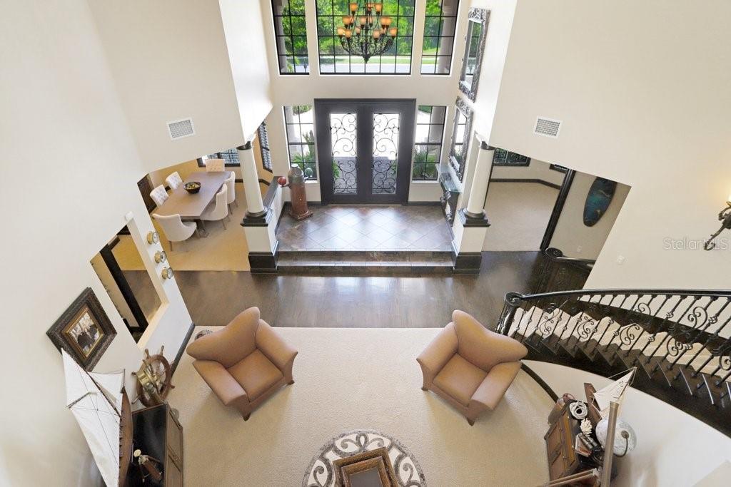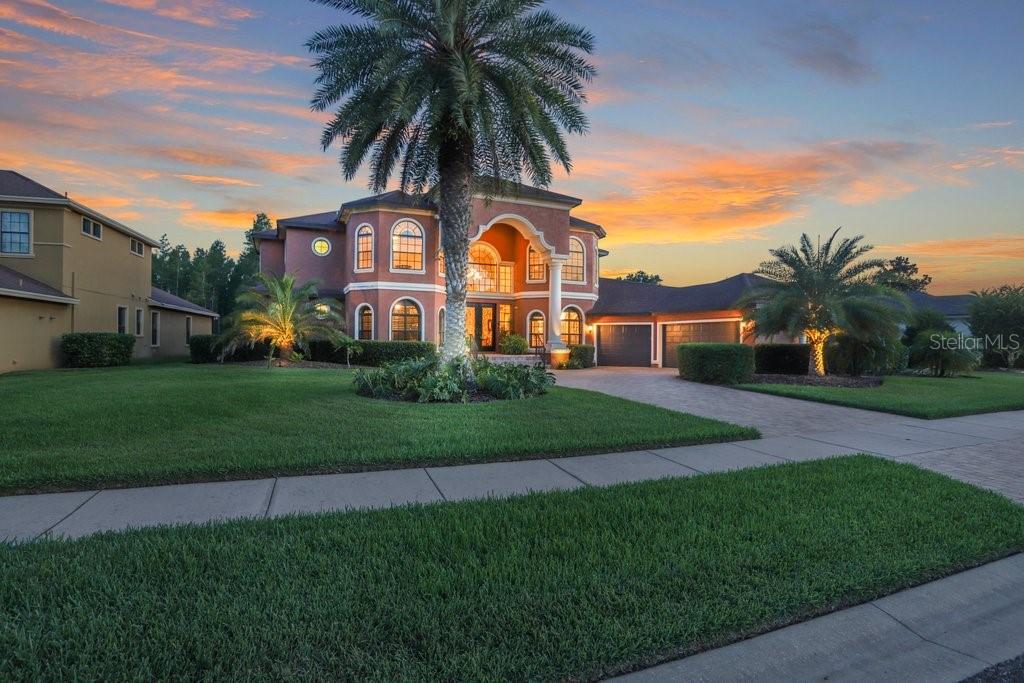Nestled within the prestigious gated village of Rose Pointe in Connerton, where luxury and tranquility converge, stands an extraordinary custom home, poised majestically on 0.33 acres of pristine conservation land. As you approach the residence, the grandeur is evident, with meticulously manicured landscaping guiding the way to the stately entrance. This magnificent abode spans over 4,600 square feet, boasting architectural brilliance and exquisite craftsmanship at every turn. As the double wood & wrought iron doors swing open, you're greeted by the awe-inspiring sight of the foyer, where ceilings soar to an impressive height of 24 feet, creating an ambiance of opulence and grandeur.