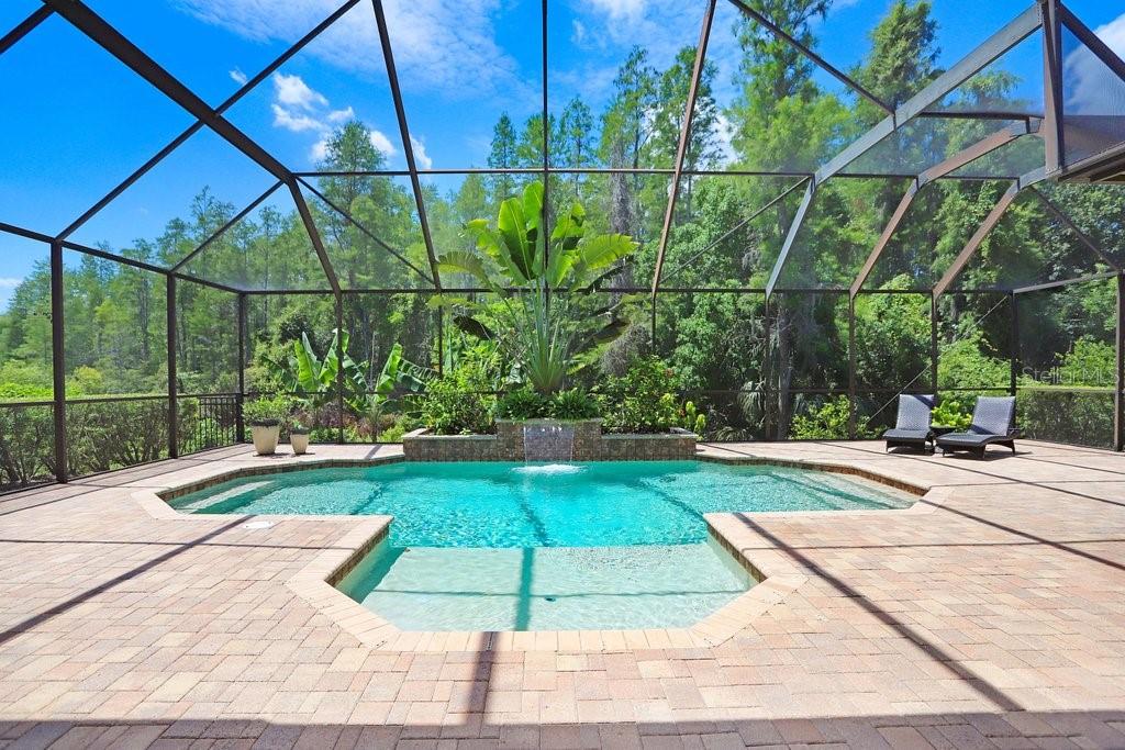Step further into the residence, and your senses are immediately captivated by the bespoke features that adorn each corner. To the right, a custom wine room beckons, offering sanctuary for oenophiles with its capacity to house up to 200 bottles and a dedicated wine refrigerator, promising to elevate every gathering to a new level of sophistication. On the eastern wing of the estate awaits the piece de resistance - the master suite, a private sanctuary designed for unparalleled luxury and relaxation. Tray ceilings crown the space, while a divine seating area invites moments of repose for the avid reader. The custom walk-in closet stands as a testament to indulgence, while the master bathroom exudes serenity with its large soaking tub and frameless walk-in shower, complete with dual shower heads. For those who revel in the culinary arts, the gourmet kitchen awaits, outfitted with GE Monogram stainless steel appliances that befit a chef's dreams. From the full-sized built-in refrigerator and freezer to the six-burner gas cooktop, every detail has been meticulously curated to ensure culinary excellence. 42" upper solid wood cabinets with crown molding, striking stacked stone backsplash, and under-cabinet lighting add an element of sophistication, while the large breakfast nook with mitered windows bathes the space in natural light. Entertainment knows no bounds within this abode, as an expansive family room beckons with a gas-burning fireplace and granite countertop bar, perfect for hosting soirees or intimate gatherings. Adorned with quadruple pocket sliding glass doors, the room seamlessly merges indoor and outdoor living, creating a space that is as versatile as it is inviting. Ascend the elegant staircase with wrought iron railings, and a world of luxury unfolds before you. Three generously sized secondary bedrooms, one with its own en-suite bath and the others jack-n-jill offer unparalleled comfort and privacy, while a large screened terrace invites moments of contemplation amidst the serene conservation views. Outside, the entertainer's paradise awaits, with a saltwater pool as its centerpiece. Complete with a newer pump, gas heater, and pebble finish, the pool exudes sophistication and style, while the expansive paved deck and lounging areas within a striking two-story screened lanai provide the perfect backdrop for al fresco gatherings. No detail has been overlooked in this unparalleled residence, with upgrades abound, including a whole-house automatic Generac generator, brand new HVAC systems, security cameras, electronic wiring hub, and so much more. From the moment you step foot into this extraordinary home, you'll be captivated by its timeless elegance and unparalleled beauty, beckoning you to embark on a journey of luxury and refinement.