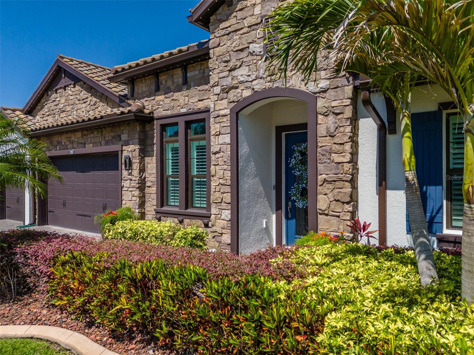 Breathtaking Panoramic Water Views from the Moment You Walk In! This stunning 4-bedroom, 3.5-bathroom home with a 3-car garage offers the perfect blend of elegance, functionality, and modern convenience. Thoughtfully designed with an open-concept layout, it includes a private office, formal dining room/den, and an oversized bonus room with access to the outdoor living space--ideal for a media space, game room, or flex room. Soaring 12-foot ceilings, custom stone accent walls, crown molding, soft close cabinetry and 8-foot doors that elevate the home's luxurious feel, while designer touches like plantation shutters, modern fixtures and window treatment add both style and comfort. This home is loaded with eco-friendly and smart tech features, including: Interior and exterior Wi-Fi-controlled lighting, Smart kitchen appliances, Front, back and lanai Permanent LED Nebula lighting systems (Every system include full dimming capability to set the amount of light, color or mood and different entertainment patterns), Solar Panels for extremly low utility costs, Tesla Powerwall for energy backup, Electric vehicle charging station and more. This floor plan features a spacious chef's kitchen with a grand island, 5 gas burner stove, 2 ovens, farm sink, slide out features for pots & pans/trash, walk in pantry and plenty of counter space. The homes design offers a seamless flow into the living, dining and outdoor oasis ready for relaxing and entertaining. The great room features 150 years old antique barn wood, electric fireplace, shelving and durable quadruple tented sliding pocket doors. With a seamless indoor-outdoor flow, this home is designed for year-round Florida living--an entertainer's dream with panoramic water views at every turn. The sliding doors lead to a breathtaking covered lanai with travertine pavers, a custom-designed saltwater pool, spa and sundeck.*Auto Pool water filling system (never worry about adding water).