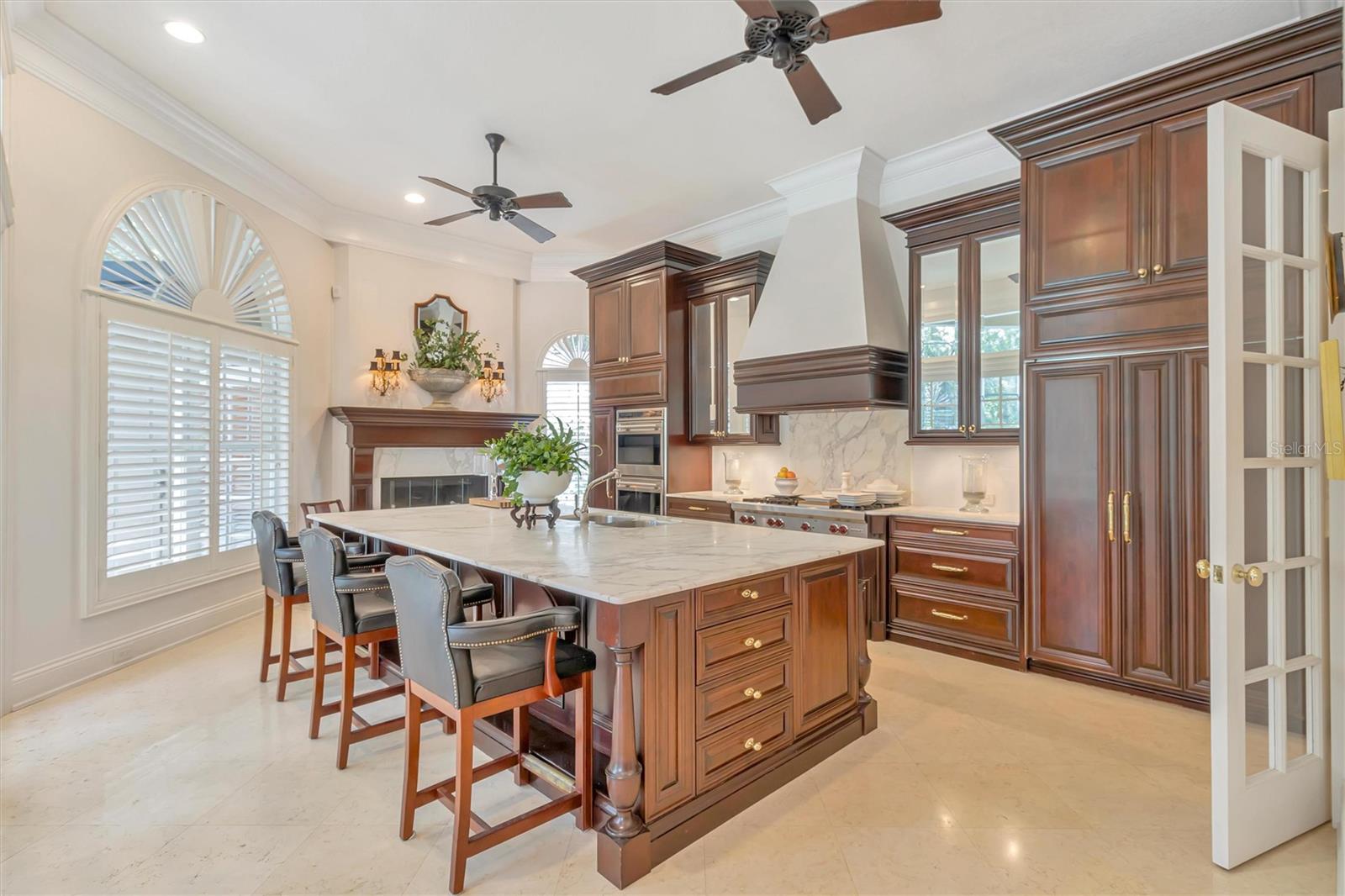 Tampa Palms Custom Build on a park like setting of Stonington South Drive and remodeled in 2004 with the talent of true craftsmen and the industry's finest products. Extraordinary secluded privacy within the charming yet hospitable neighborhood that features tree lined curving streets and ponds rich with birds and deer. Its calm, cool and convenient to get to daily needs that are within a fifteen minute radius. Enter the motor court entrance with its lantern lit water fountain featured garden, to the iron doors and experience this quiet elegance. Authentic solid sable oak flooring with underlay greets and is carried throughout the home while the twelve foot ceilings, fourteen inch crown mouldings and eight inch baseboards all vie for the eye. European Crystal and antique brass chandeliers, sconces and curated elements throughout this four bedroom, library and morning room home offers three full baths and two half baths including a dedicated pool bath. The custom millwork throughout the home starts with the French doors that extend the length of the home & offer a hundred eighty degree view of the water and forestry backdrop of this over a third acre site. This kitchen is even better than pictures! Fireplace at one end and coffee room at the other and in between is a eleven foot single slab Calcutta Gold marble island with two Bosch dishwashers and sinks. Wolfe cooking on six top 48" unit and double ovens along with the Sub Zero refrigeration system makes cooking an art form. The coffee room features custom shelving and cabinetry with glass doors, wet bar and wine refrigeration. Fittings throughout this home are Baldwin Brass. The lounge off the kitchen food prep area features custom built floor to ceiling housing for multiple televisions and can be easily modified for 72" etc. The Main bedroom suite is overlooking the pool, pond and forest that's teeming with wildlife. The morning room off the master has the best view in the house. The Main bath is Italian cabernet marble flooring, tub and Roman shower and is rich with windows and sunshine and matches the cabinets of cherry and counters of white marble. Bedrooms have ensuite baths,(one has a Jack & Jill bath ) and one features a window seat, custom fitted closets and plantation shutters. The Fabric care center features Canyon Copper granite counters, Unsealed natural slate flooring and a family efficiency center with cubbies and custom made bench . The automotive needs are met with three car capacity, full wall built ins, and a pool service door for ease and convenience. This home is framed in landscaped grounds, with tiered wall gardens and paved walks. The southwest corner of the property is home for the bonus "Bitsy" house that is the garden house for the tomorrows. Enjoy!