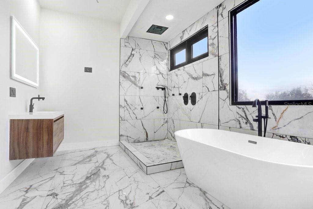 Under Construction. A newly constructed, three-level architectural marvel in the heart of West Tampa. Designed with the discerning entertainer in mind, this modern retreat boasts no CDD or HOA fees, Flood Zone X, and offers unmatched privacy paired with breathtaking craftsmanship. As you step through the grand entrance, a sunlit foyer welcomes you with an airy open floor plan adorned with recessed lighting, pristine finishes, and a dazzling wine display wall that sets the tone for luxury. The formal dining room is tailor-made for elegant gatherings, with seamless access to a fine-appointed butler's pantry. These spaces lead into a chef's paradise: an extraordinary kitchen featuring sleek black wood cabinetry with gold accents, quartz countertops, and high-end ZLINE appliances. The centerpiece is a 6-burner gas stove with a griddle, complemented by a double oven, microwave drawer, and a stainless-steel Bosch automatic coffee machine. Additional highlights include two FORTE refrigerators concealed within custom cabinetry, a wine refrigerator with automatic dispensers, and an island with an auxiliary sink --all overlooking the expansive living room. The living space is enhanced by a double-sided fireplace, warming both the living and family rooms, which feature a full wet bar and wine cooler. Every room on this level flows effortlessly to the spacious back deck, where there's ample room to add a pool or create your dream outdoor haven. Completing the first floor is a dedicated bedroom with full bath, perfect for use as a guest suite or private office. Ascend to the second floor to discover an open loft ideal for a game room or reading retreat. Double doors open to a grand primary suite, where a private dry bar with a wine fridge introduces a luxurious bedroom outfitted with a fireplace, recessed speakers, and direct access to a private balcony. The en-suite bathroom is a spa-like masterpiece, featuring frameless LED smart mirrors, dual vanities, a soaking tub, and a seamless glass shower with a waterfall feature. A custom walk-in closet completes this lavish sanctuary. Adjacent to the primary suite is a dedicated theater room equipped with a wet bar, microwave, wine fridge, Pioneer speaker system, and wireless touchscreen controls, offering the ultimate movie night experience. This level also houses two additional bedrooms--one with a private en-suite, walk-in closet, and balcony access, and the other with a custom-built closet and nearby bathroom. A spacious laundry room adds convenience to this level. The top floor elevates this home's entertainment potential with a lounge space opening to a rooftop balcony. A central wet bar is ideal for serving guests, while a fully equipped gym, complete with Jack-and-Jill bath access to the fourth bedroom. An additional bedroom with en-suite bath and a second lounge area with balcony access complete this level. All major appliances are brand-new, an automatic fence provides privacy, and Nest thermostats, a Ring Doorbell, and a Netgear Advanced Wi-Fi system keep you connected and secure. Upper-level balconies with fire pits add a magical ambiance to your evenings, making this home the perfect blend of functionality and flair. Don't miss the opportunity to make this entertainer's dream home your own. With its cutting-edge design, unparalleled features, and prime West Tampa location, this is more than a home--it's a lifestyle. Schedule your private tour today!